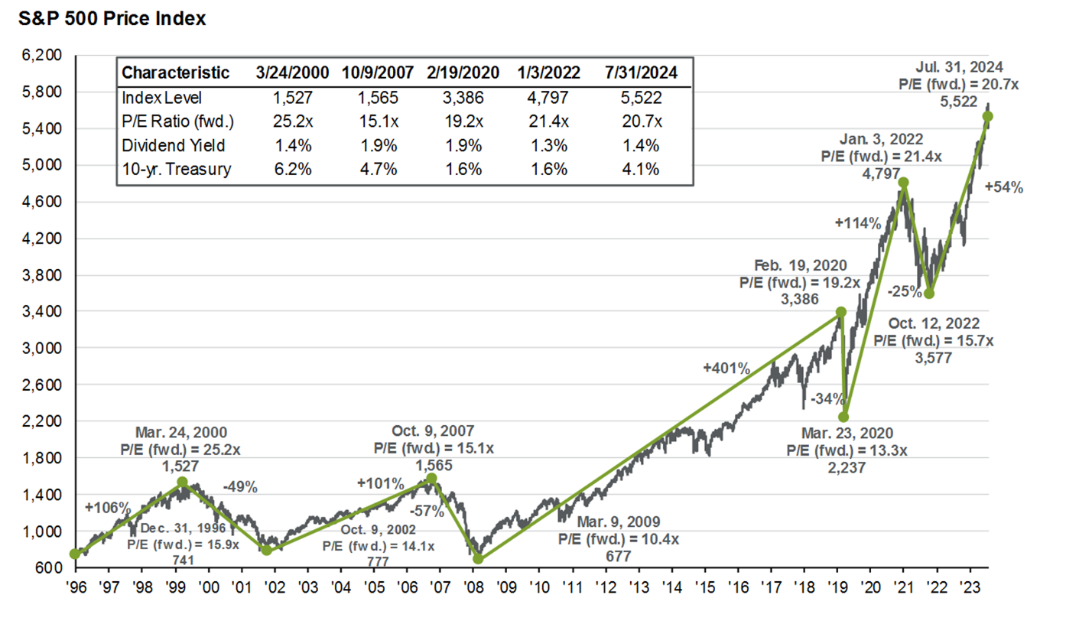 Эд Ярдени, президент компании Yardeni Research, в 2023 году сделал смелый прогноз по поводу роста акций в США: он считал, что они выростут до 5400 пунктов в 2024 году. Тогда его ожидания были самыми оптимистичных на Уолл-стрит. Однако к 31 июля 2024 года рост превысил даже самые смелые прогнозы и достиг 5552 пунктов. Sostav публикует обзор отчета «Путеводитель по рынку» от J.P. Morgan.