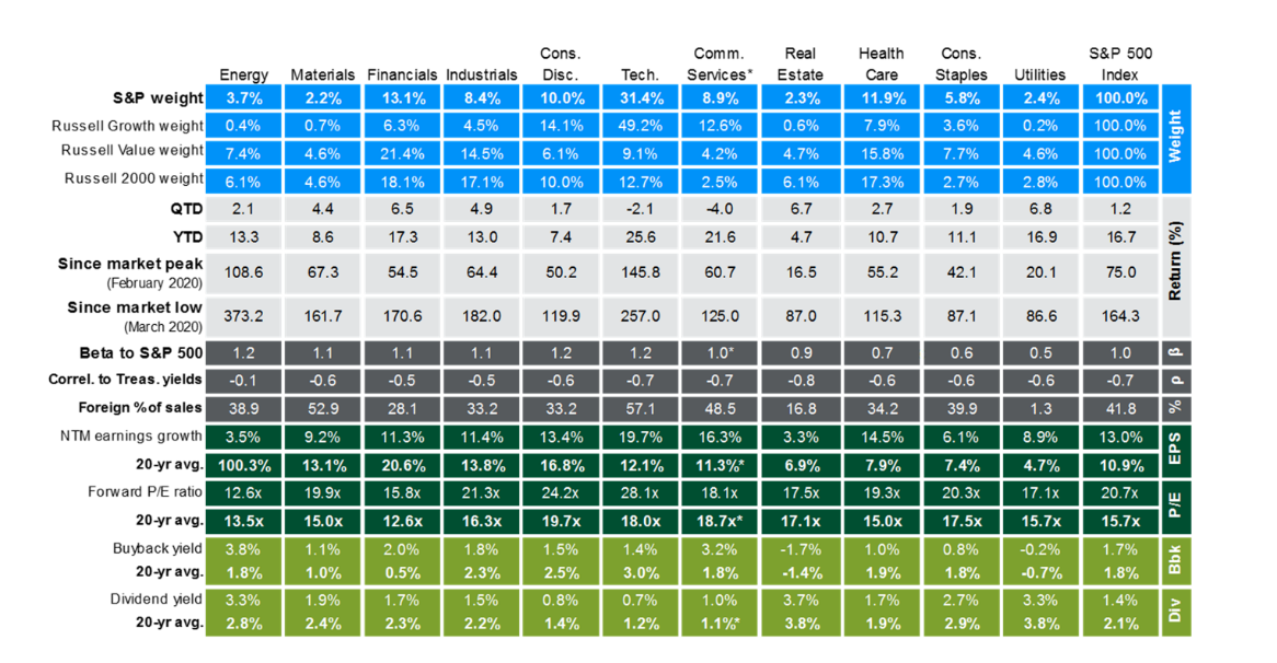 Доходность и оценки по секторам