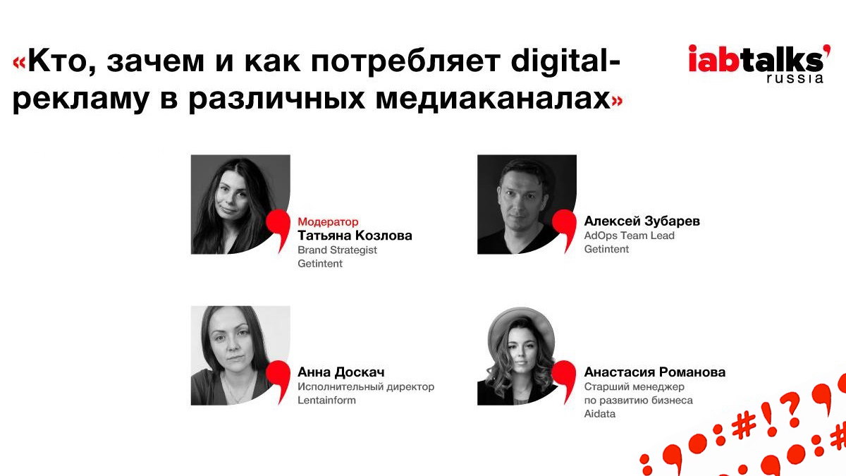 Во время прямого эфира IAB Russia Алексей Зубарев представил результаты in-house исследования Getintent о взаимодействии пользователей с рекламой. Вместе с Анастасией Романовой из Aidata и Анной Доскач из Lentainform спикеры попробовали разобраться в особенностях поведения аудитории на разных площадках, выяснить, кто такой кликер и что его мотивирует.