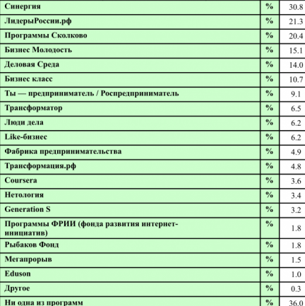 Заметим, что в приводимой ниже таблице список образовательных программ указан в порядке убывания знания их респондентами, что, конечно, не отражает уровень практической значимости программ.
