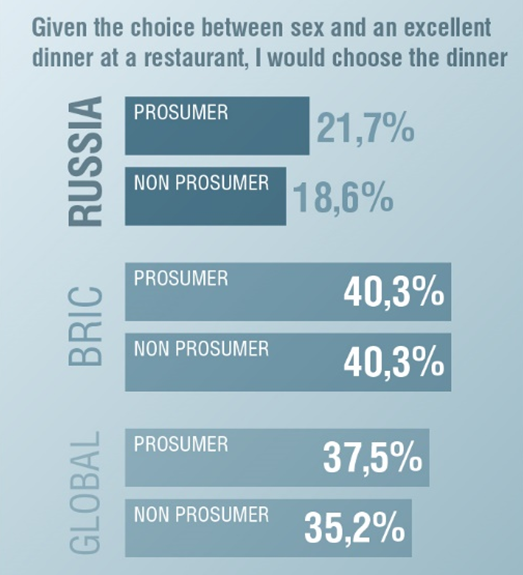 В вопросе одержимости тем, что мы едим и как это выглядит, Россия не отстаёт от остального мира. Foodporn – один из самых популярных хештегов в русскоязычном инстаграмме. Но променять секс на еду в нашей стране готовы гораздо меньше потребителей, чем в среднем по миру.