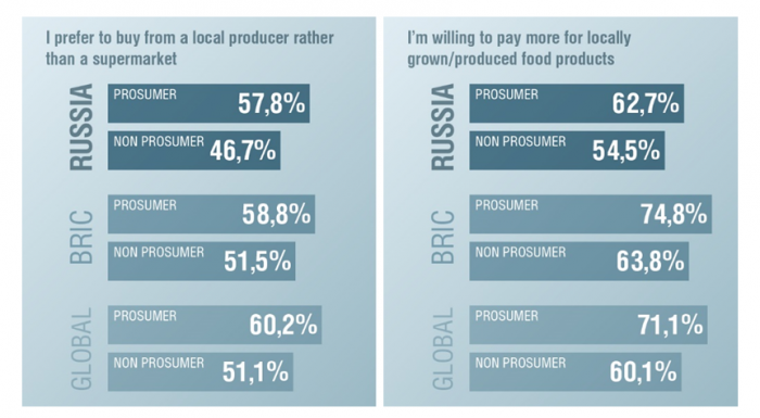 Большинство современных потребителей в России предпочитают покупать продукты локального производства. По проценту согласившихся с этим утверждением мы почти не уступаем другим странам. Но готовность платить больше за такие опции у наших потребителей ниже. Большое значение здесь имеет и невысокий уровень жизни – люди в нашей стране не всегда могут позволить себе перейти на более дорогие продукты. Но в случае, если ваш продукт сопоставим по цене с конкурентами, информация об ингредиентах местного происхождения может повлиять на выбор в пользу вашего бренда.