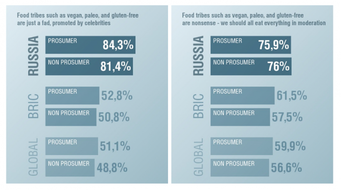 Но что касается нестандартных систем питания, то наших потребителей можно скорее назвать противниками, чем сторонниками. В нашей стране считают эти истории навязанными, в то время как показатель согласившихся с утверждением о пропаганде в других странах сильно меньше.
