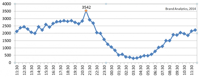 По данным компании, всего за сутки (с полудня 29 до полудня 30 октября) в социальных медиа зафиксировано 85552 упоминаний Хэллоуина от 65983 уникальных авторов. Авторы демонстрируют нарастание активности к вечеру с абсолютным пиком около 21.00.