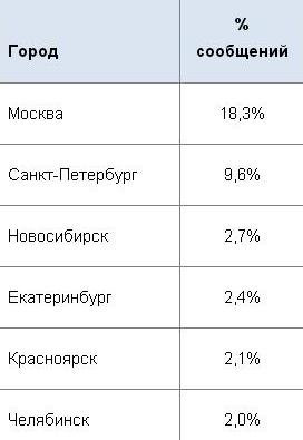 Больше всего Хэллоуин популярен в Москве (18,3% постов) и Санкт-Петербурге (9,6% сообщений). Хэллоуин нравится и жителям городов Сибири и Урала: Новосибирска (2,7%), Екатеринбурга (2,4%), Красноярска (2,1%) и Челябинска (2,0%).