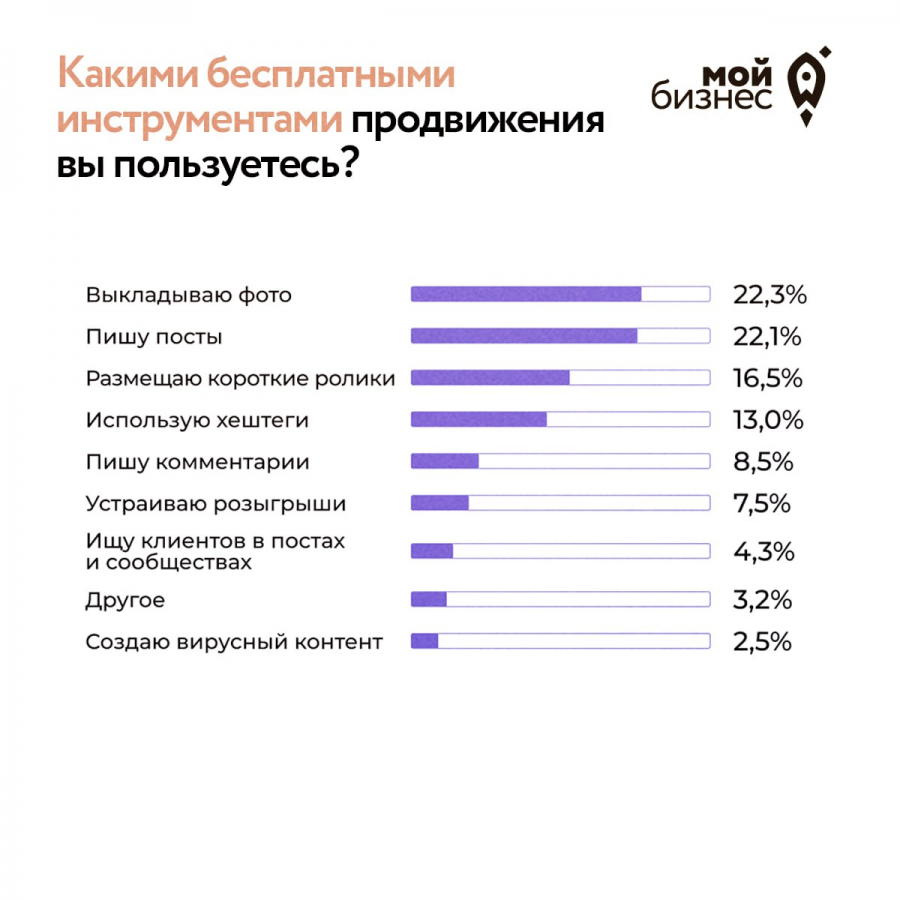 Минэкономразвития России и Ассоциация «Мой бизнес — мои возможности» совместно осуществили исследование под названием «Продвижение компаний через социальные медиа». Более 4 тыс. малых и средних предприятий приняли участие в опросе, который был проведён онлайн.