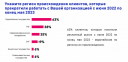 За это время клиентские листы 52% агентств не изменились, 31% респондентов заявили о росте нового бизнеса. Небольшой процент опрошенных (4%) рассказали о расширении клиентского листа до 80%. Из новых клиентов 85% — российские, 31% — из стран СНГ, а 19% — из Азии.
