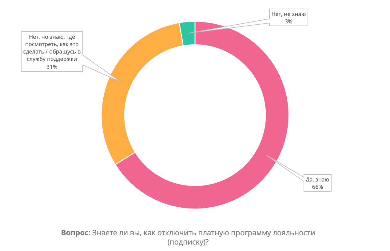 Только 3% опрошенных не знают, как отключить подписку на платную программу лояльности, а половина участников опроса 51% за последний год отключали подписки более одного раза.
