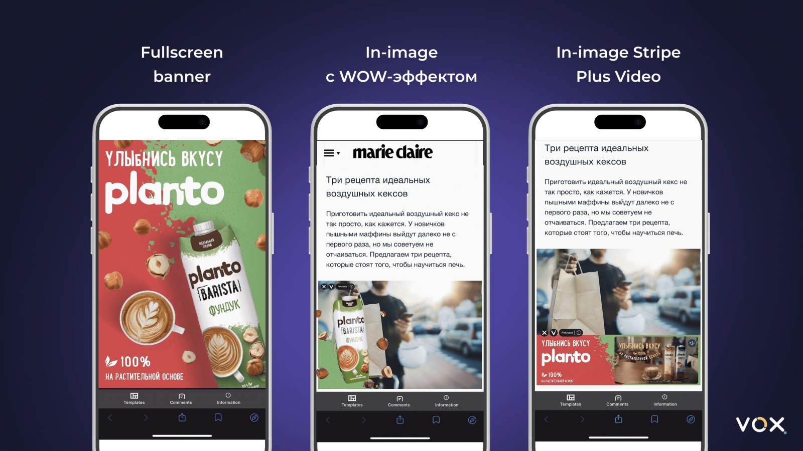 In-image Stripe Plus Video и Fullscreen banner занимают второе и третье места соответственно, но природа их эффективности различна. in-image удерживает внимание за счет нативности, а fullscreen за счет принудительного перекрытия контента, что сопровождается раздражением.