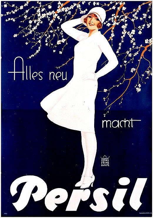 Один из самых ярких рекламных образов стирального попрошка Persil – женщина в белом, которая знакома уже нескольким поколениям покупателей Persil. Ее создал знаменитый берлинский художник и карикатурист Курт Хайлигенштедт, которому в 1922 году компания поручила нарисовать рекламный плакат. Женщина в белом - не выдуманный персонаж. Ее прообразом послужила 18-летняя подруга художника. В белом платье, широкополой шляпе и с упаковкой порошка в руках девушка позировала для рисунка.