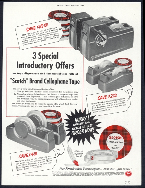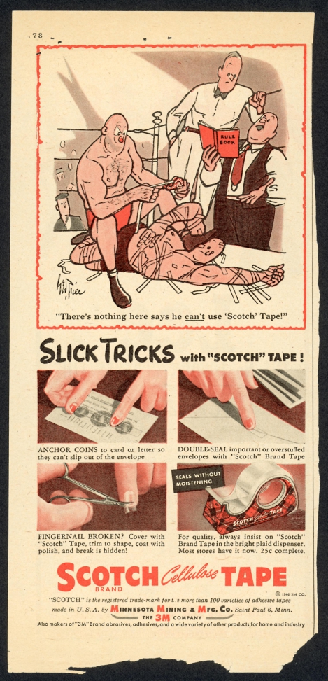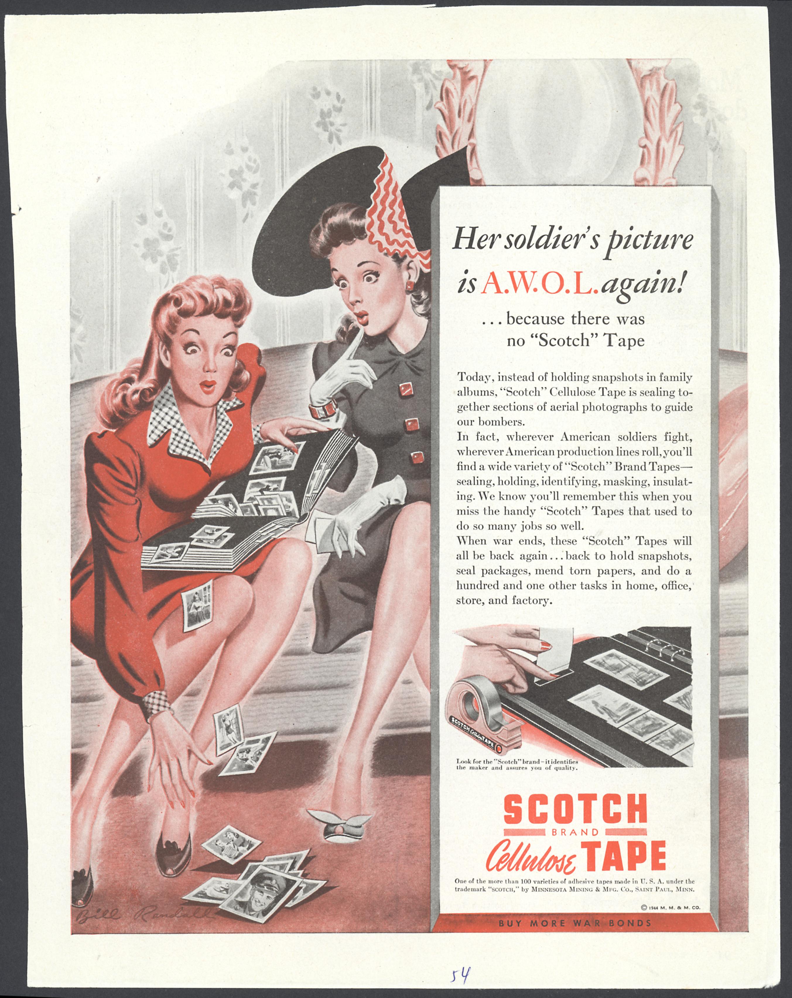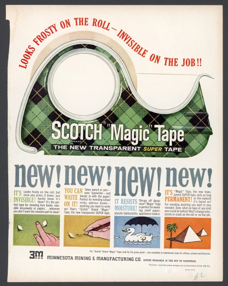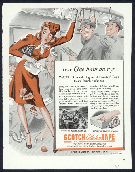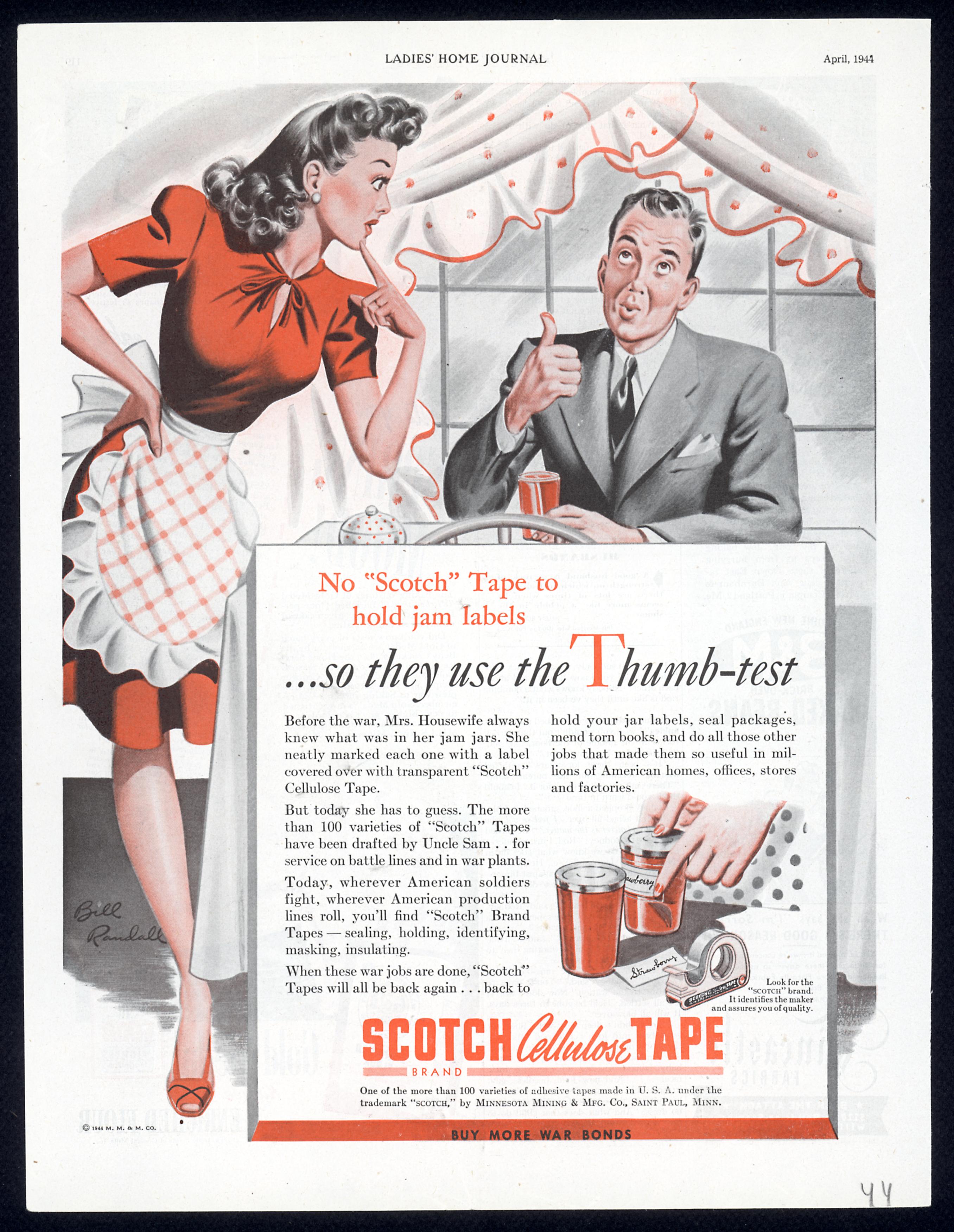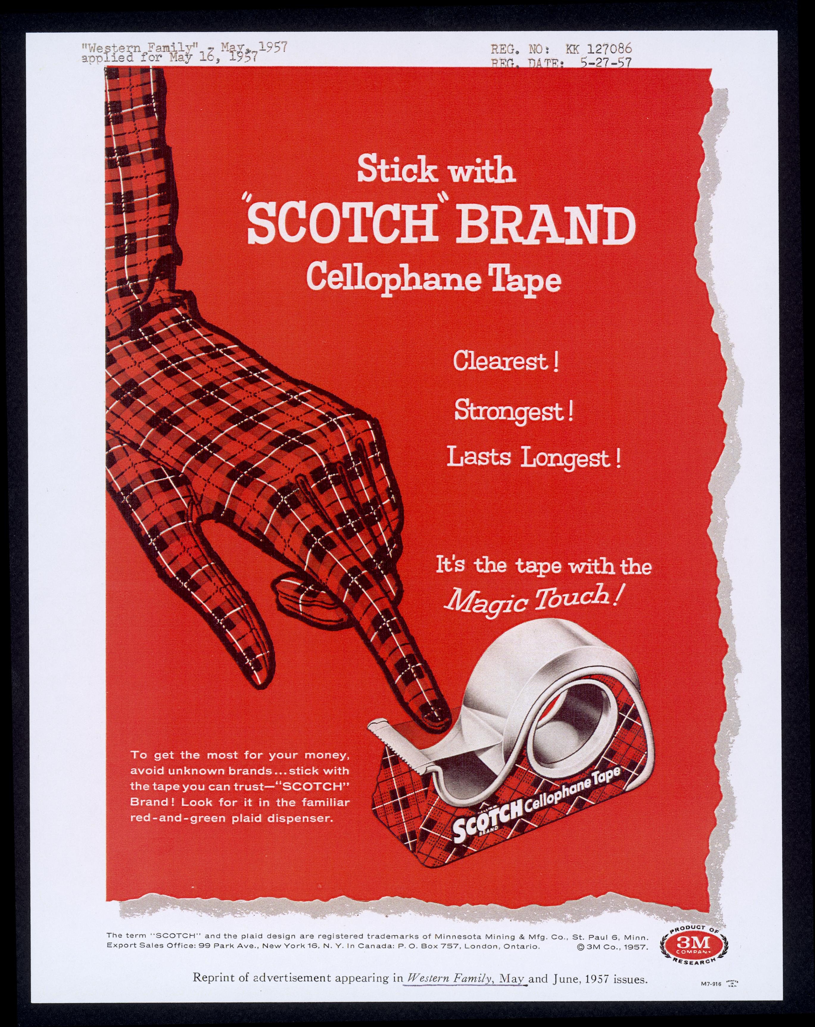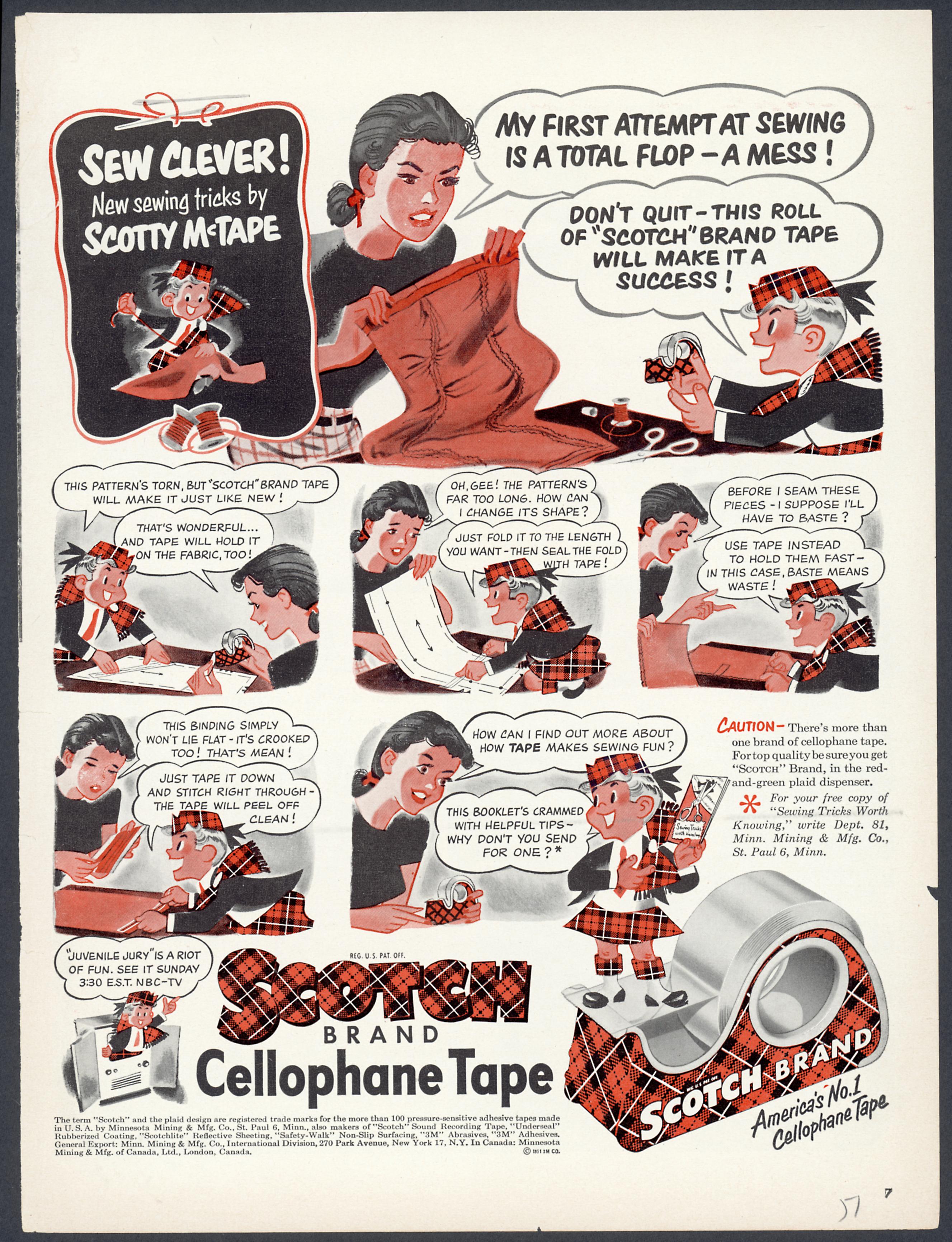 Клейкая лента под маркой Scotch была очень популярна у женской половины общества, которая придумывала необыкновенные способы применения: например, с ее помощью модницы превращали свои локоны в кудри, применяли ее для маникюра, а также удаляли ворсинки с пальто. Все эти многочисленные способы находили отражение в рекламе.