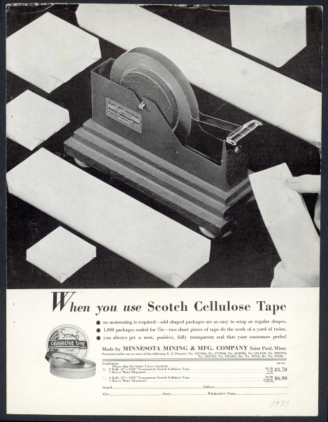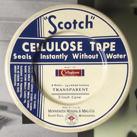 Вскоре Ричард Дрю занялся разработкой нового продукта - прозрачной клейкой ленты на полимерной основе. В результате проведенных работ была изобретена клейкая лента на целлофановой основе с клеящим составом из каучука, масел и смол (Scotch Cellophane Tape). Она была водонепроницаемая и противостояла широкому диапазону температур. Впрочем, изначально данная лента предназначалась для запечатывания пищевой обертки. Ею должны были пользоваться пекари, бакалейщики и упаковщики мясных деликатесов, что можно увидеть по рекламным материалам марки того времени.