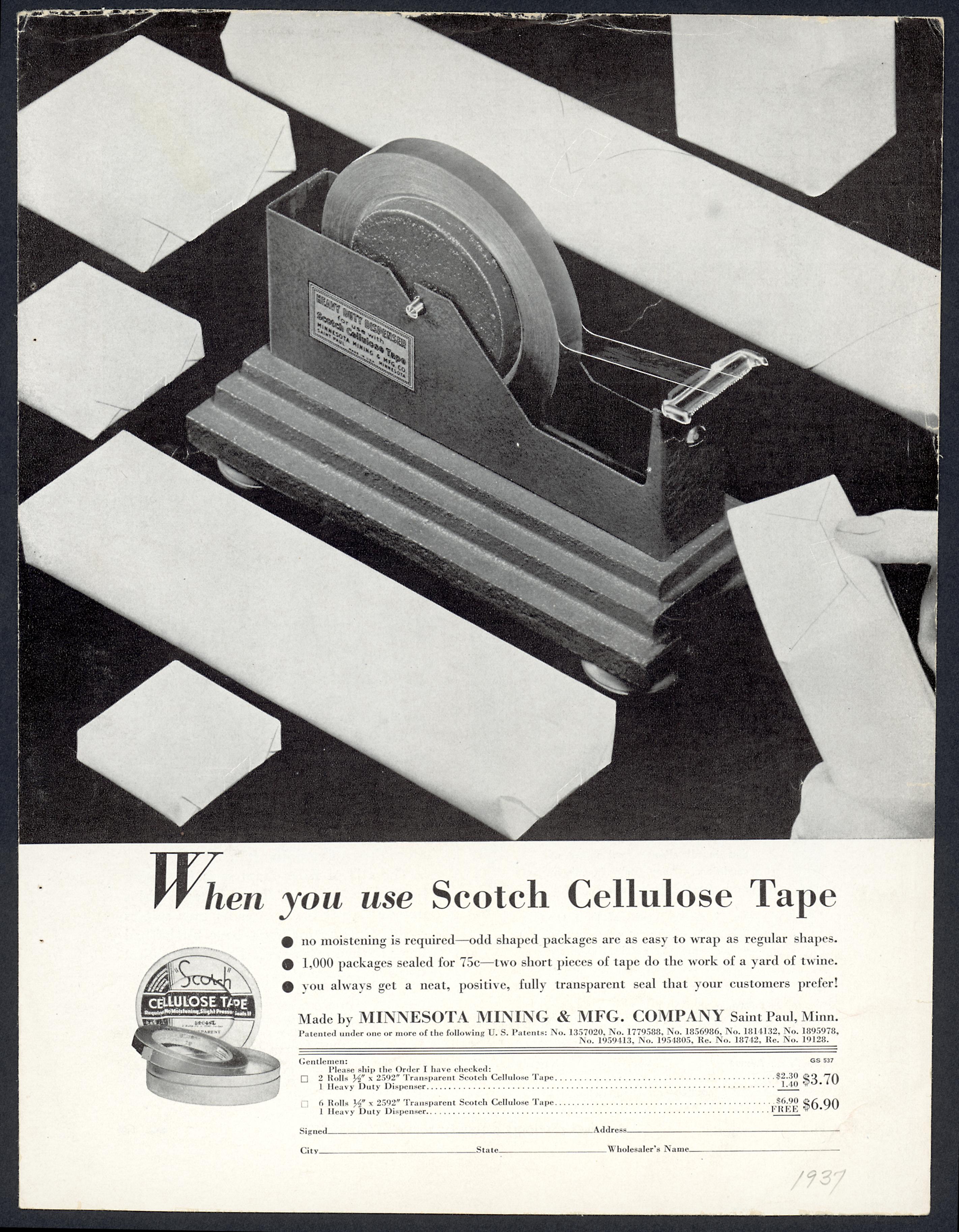 В 1932 году менеджер по продажам компании 3М Джон Борден (John A. Borden) предложил дополнить рулон-диспенсер клейкой ленты Scotch «встроенным» лезвием, что существенно облегчило использование ленты.