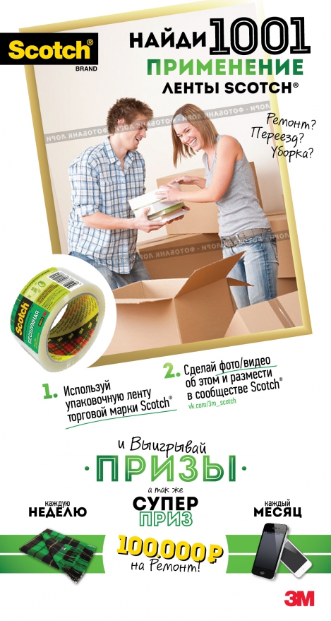 Самая «свежая» промо-кампания клейких лент стартует 1 июня 2013 года в виде конкурса на лучшее применение упаковочной клейкой ленты Scotch во время переезда, ремонта или уборки.