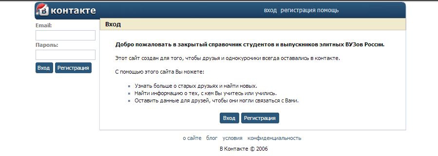 Осенью 2006 года проект находился на стадии тестирования. Первые функции появились 10 октября, ставшим Днем рождения «ВКонтакте». В ноябре была запущена открытая регистрация, а уже в январе 2007 Vkontakte.ru вошёл в число 50 наиболее быстрорастущих сайтов интернета. Планку в миллион зарегистрированных пользователей сайт преодолел в июле 2007-го, в ноябре ресурс привлек трехмиллионную аудиторию. В начале 2008 года обогнал всех конкурентов и с тех пор остается лидером Рунета в сегменте соцсетей.