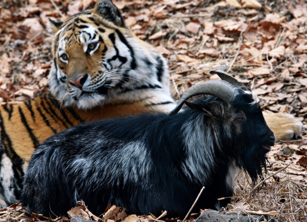 Напомним, история дружбы тигра Амура и козла Тимура произошла в Приморском сафари-парке. Козла в качестве добычи привели в вольер к амурскому тигру, однако хищник вместо того, чтобы его съесть, стал с ним дружить. Судьба животных вызвала большой общественный резонанс.