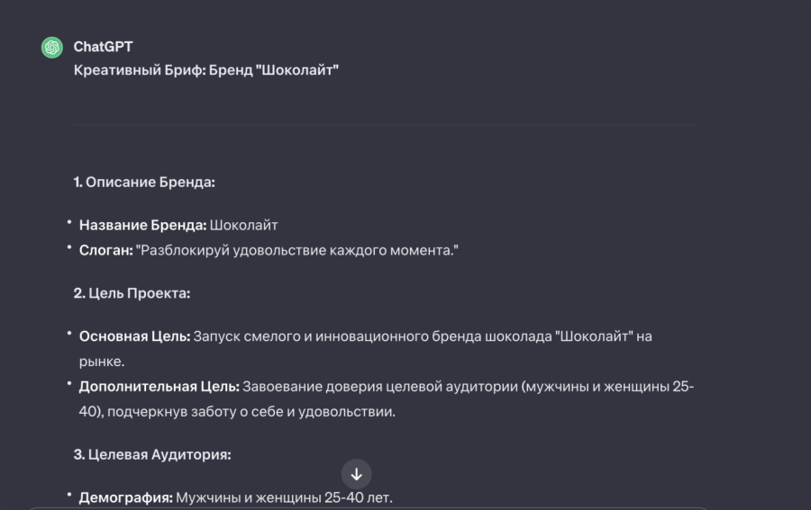 С этим объемом информации идём в нейросеть и просим написать формальный бриф. Используем text-to-text нейросеть (типа gpt, claude, yagpt) и получаем бриф такого содержания: