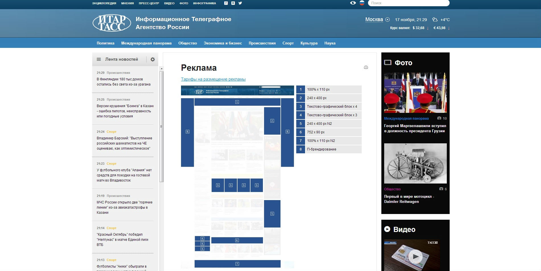 Рекламные форматы itar-tass.com