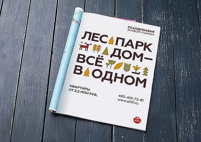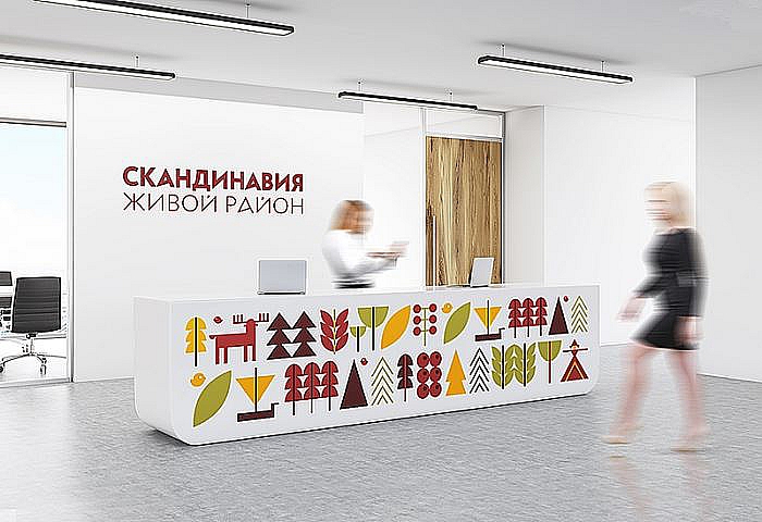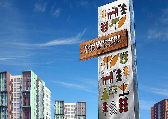 В агентстве DDVB разработали визуальный образ жилого комплекса «Скандинавия» — микрорайона Новой Москвы. Для фирменного стиля бренда дизайнеры использовали узнаваемые скандинавские мотивы. Команда проекта предложила лаконичную коммуникацию: «Лес, парк, дом — всё в одном».