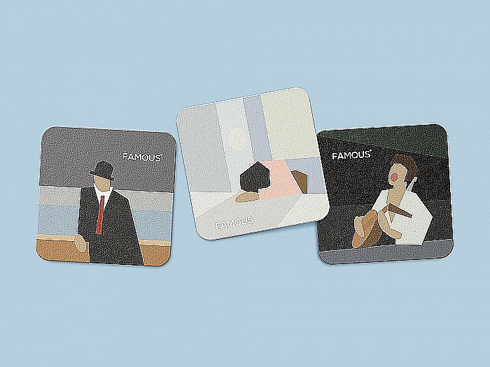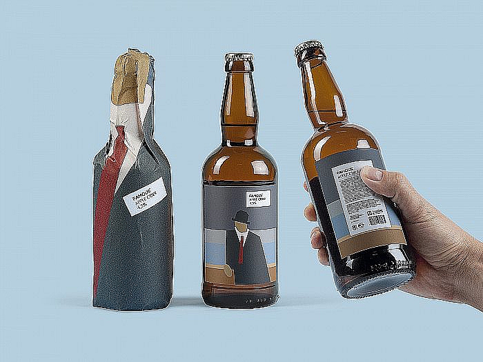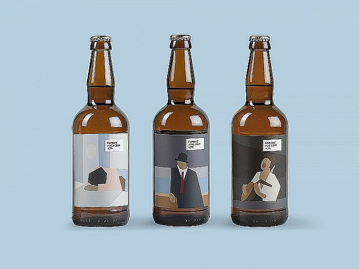 В основу дизайна упаковки легла «игра» с узнаваемыми полотнами российских и иностранных художников: «Сын человеческий» Рене Магритта, «Лютнист» Караваджо и «Девочка с персиками» Валентина Серова. Каждая из картин соответствует одному и трёх вкусов сидра — яблочному, грушевому и персиковому.