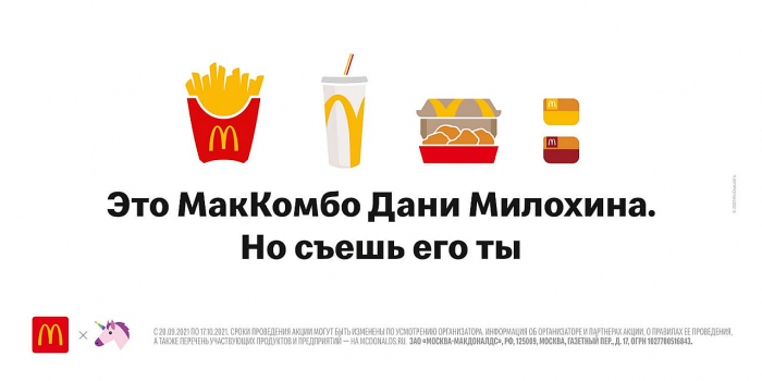 McDonald’s в России объявил о запуске серии МакКомбо, состав которой определят инфлюенсеры и селебрити — первыми героями кампании стали Настя Ивлеева и Даня Милохин. Как отметили креаторы, активация призвана показать пользователям, что их кумиры тоже являются поклонниками блюд бренда.