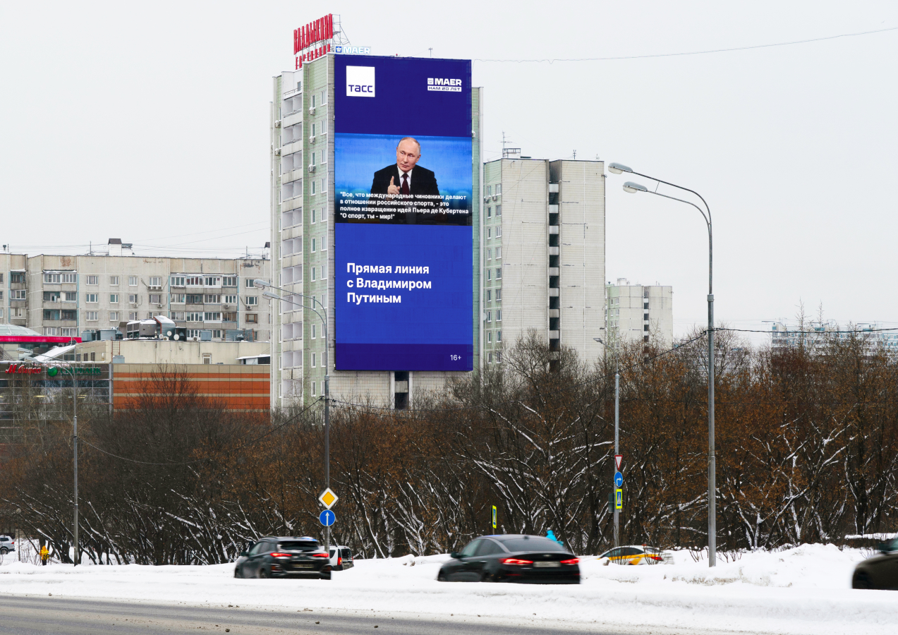 Увидеть ключевые цитаты прямой линии с президентом Владимиром Путиным в Москве можно на 127 высокотехнологичных экранах, в том числе в 26 крупнейших медиалокациях, включая Кутузовский, Ленинский и Волгоградский проспекты, Варшавское, Новорижское, Каширское, Ярославское шоссе и другие.
