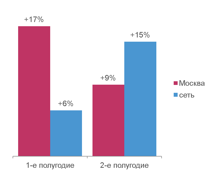 Дополнительно стоит отметить, что в 1-м полугодии быстрее росли бюджеты московского размещения, а во втором – сетевого (см. График 3).