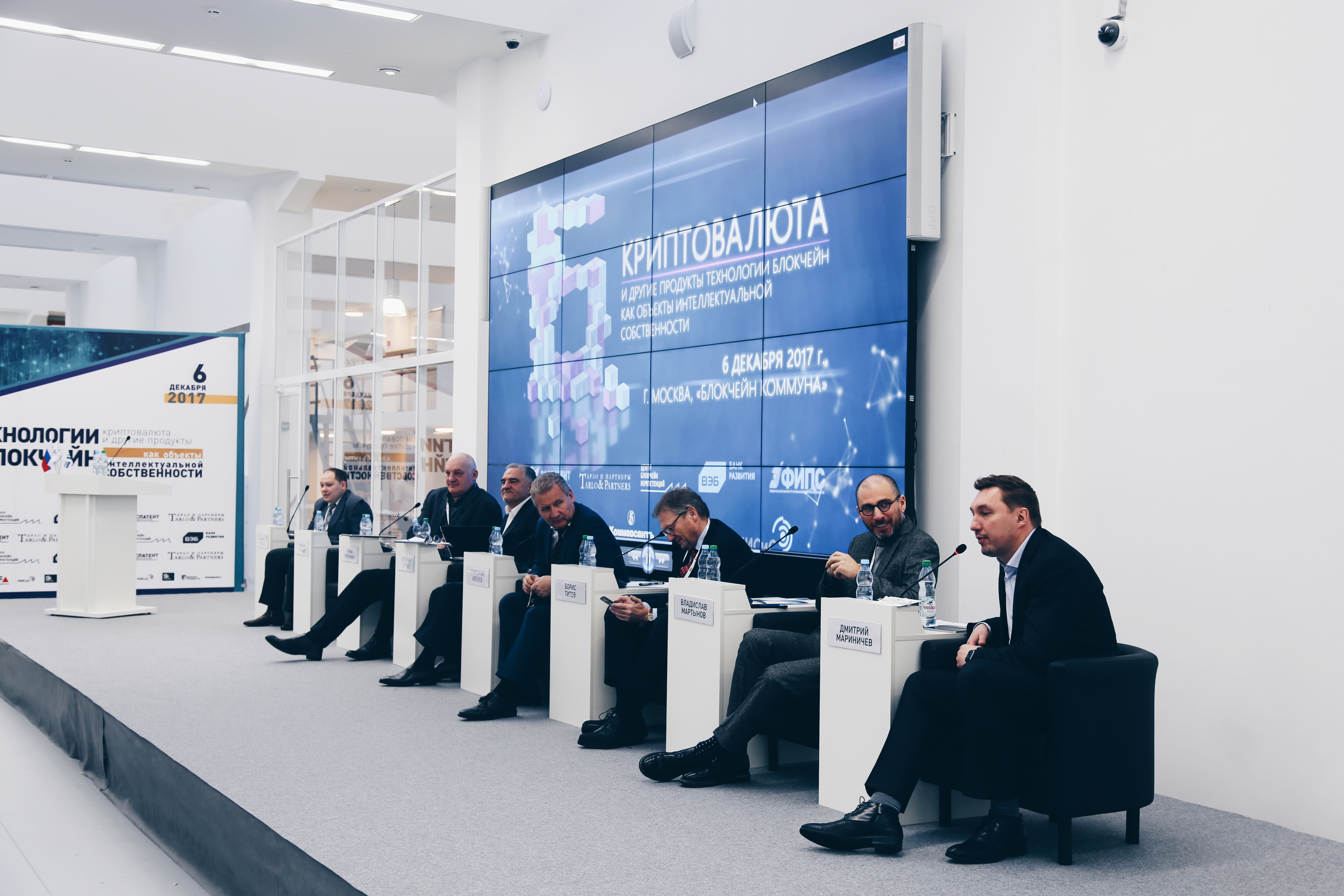 Конференция «Криптовалюта и другие продукты технологии блокчейн как объекты интеллектуальной собственности» состоялась 6 декабря 2017 года в блокчейн-коммуне Внешэкономбанка и НИТУ МИСИС при информационной поддержке ИД «Коммерсантъ». По итогам конференции была подготовлена резолюция со списком первоочередных мер по развитию нормативного регулирования технологии «блокчейн» в России, включая сферу интеллектуальной собственности.
