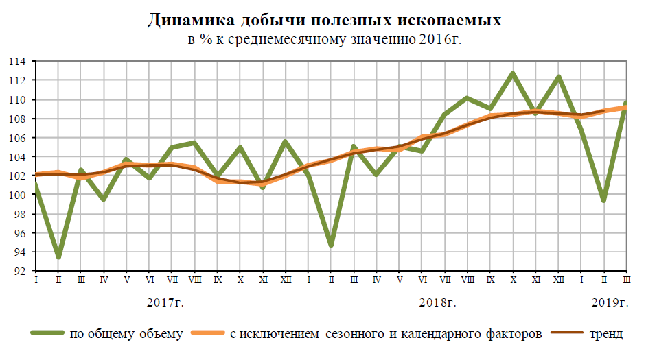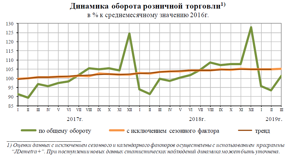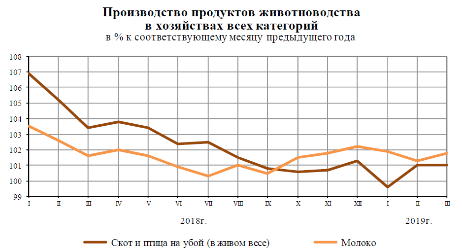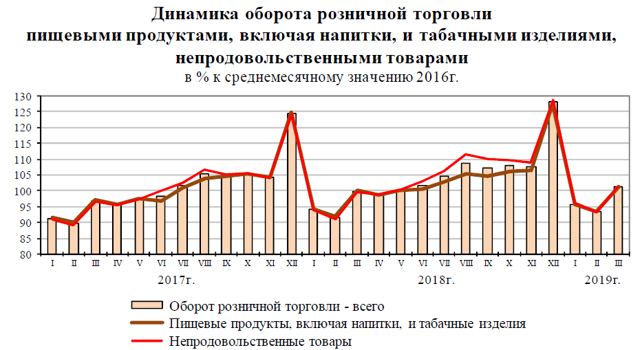 Кроме того, Росстат зафиксировал рост производства сельскохозяйственной продукции, грузооборота транспорта, оборота розничной торговли, инвестиций в основной капитал и ряда других показателей. В марте 2019 г., как и в марте 2018 г., в структуре оборота розничной торговли удельный вес пищевых продуктов, включая напитки, и табачных изделий составил 48,6%, непродовольственных товаров — 51,4%.