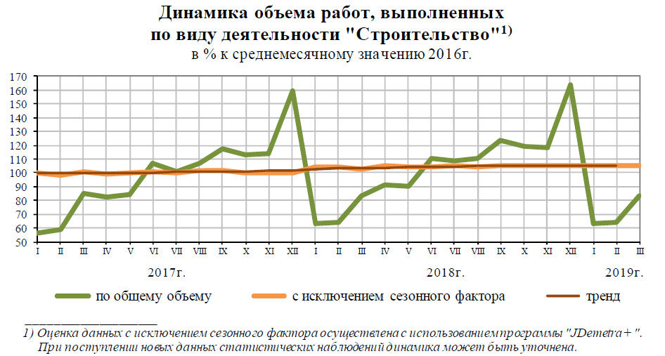 Из приведенной диаграммы видно, что экстраполяция данных 2019 года по первому кварталу некорректна: рост инфляции наблюдается с лета 2018 года, а, начиная с января 2019, она падает, причем, заметно.