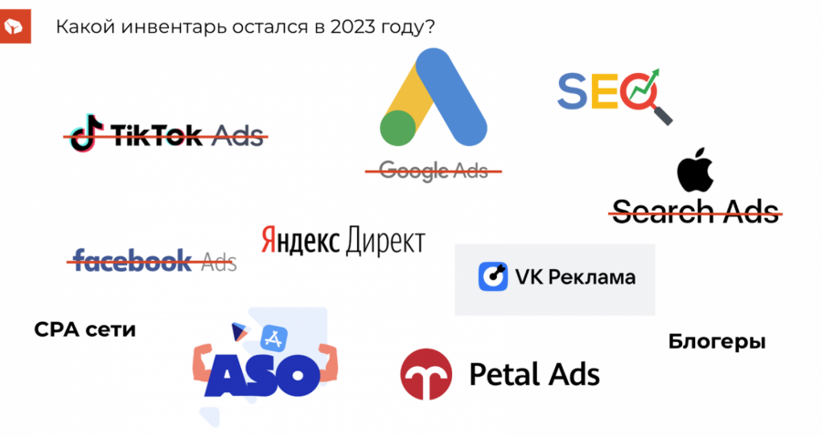 С 2021 года главная проблема рекламодателей — нехватка рекламного инвентаря. Мы потеряли все рекламные возможности инфраструктуры Google, Meta (запрещена; признана экстремистской и террористической организацией в России), которой принадлежит Facebook (соцсеть запрещена в России), Apple и других.