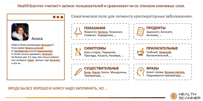 «Партнерство и обмен данными с iVengo Mobile позволит значительно увеличить вовлеченность пользователей и помочь с выбором того или иного препарата, который нужен здесь и сейчас. Технология Scanners позволяет «читать» записи пользователей и формировать аудиторные сегменты в зависимости от распознанных ключевых слов.
