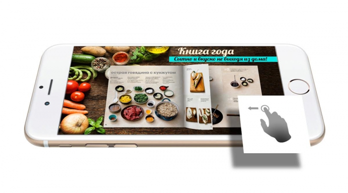Кликабельный Fullscreen-баннер с высокой степенью вовлеченности дает возможность пользователю пролистывать всевозможные страницы, которые отмечены специальным значком «swipe». Кроме перелистывания страниц, пользователь может сохранять записи со своего смартфона и делиться ими с друзьями в социальных сетях.
