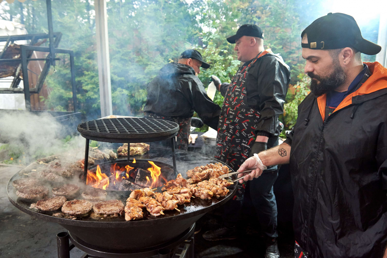 Всё это праздничное действо происходило вокруг одного большого пиршества: на улице стояли мангалы, шатры, столики, фургоны со стритфудом. В воздухе смешивался пар горячего глинтвейна и аромат жареного барана. Собственно, этот баран и являлся ключевым символом торжества. Посыл таков: «нас стригут, а мы крепчаем». Именно поэтому «Ивент-Баран» организаторы так и нарекли — «пикником для уцелевших».