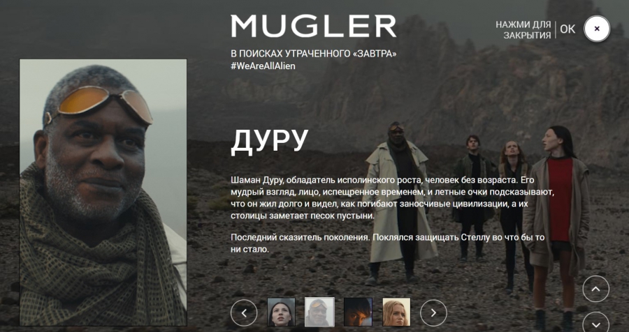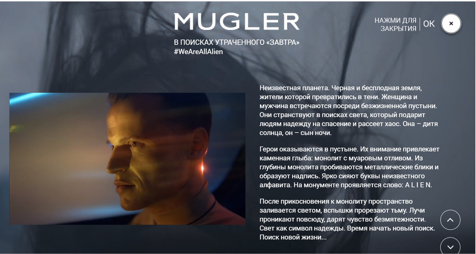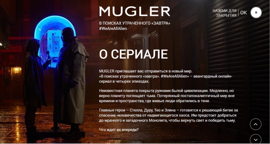 Созданный креативной студией бренда MUGLER художественный сериал из четырёх серий стал центральным в коммуникации бренда со зрителем. Сюжет, выстроенный вокруг переплетающихся между собой историй нескольких персонажей, объединяет героев в поисках Света. Визуальная эстетика сериала — отсылка к научно-фантастическим фильмам последних сорока лет.