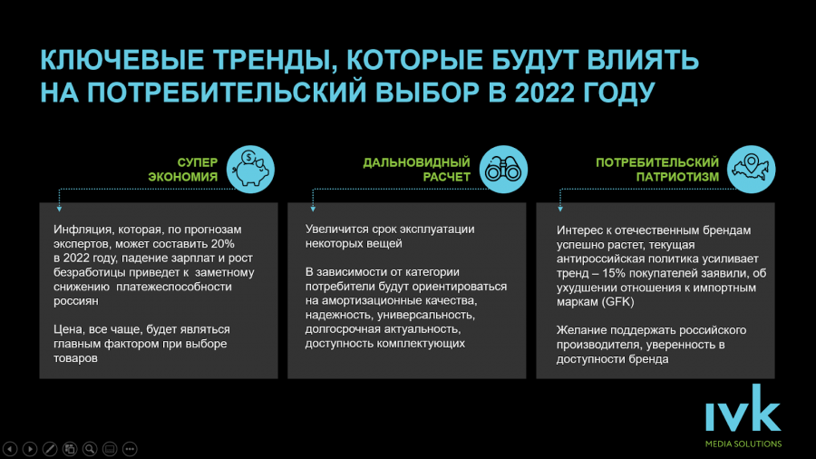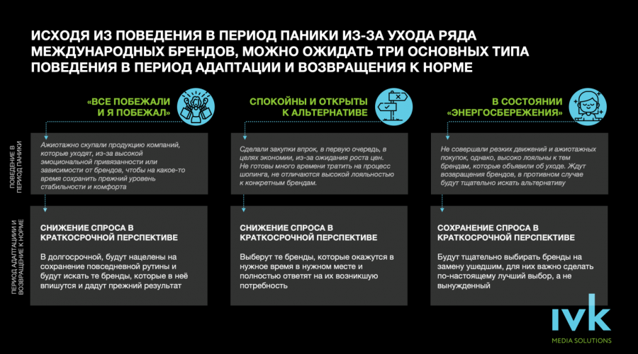 Двухлетняя пандемия усиливает восприятие любых внешних обстоятельств, особенно негативных. Сформированное за это время поведение потребителей обретает новый смысл и актуализируется. Приостановка деятельности международных брендов заставит покупателей пересмотреть списки предпочитаемых брендов (consideration-set).