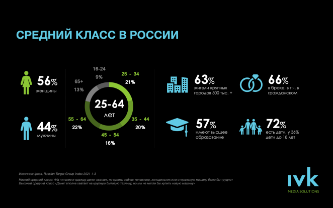 Средний класс — это часть потребителей, максимально подверженая кризису. Их отличает определенный уровень комфорта, который даёт возможность увидеть перспективу своего будущего: позволяет планировать крупные приобретения, путешествия, обучение детей, распределение сбережений.