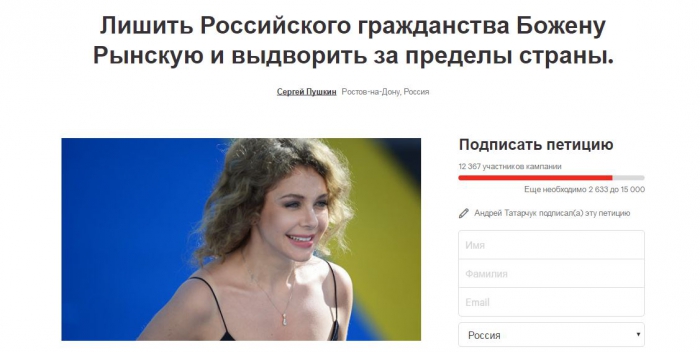 На сайте change.org уже появилась петиция с требованием лишить Рынска российского гражданства и выдворить ее из страны. Пресс-секретарь президента Дмитрий Песков назвал слова журналистки уродливым проявлениям сумасшествия. «Это полное безумие, сумасшествие, и абсолютно понятна и оправдана самая жесткая реакция общественного мнения», — заявил он РИА Новости.