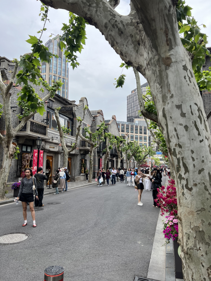 Беспрестанно снимаю видеозарисовки. В каждой поездке обещаю себе смонтировать трэвел-шоу для своего телеграм-канала (если еще не читаете «Падшую листву», подписывайтесь). Через крохотный, но безумно красивый парк выхожу на набережную реки Хуанпу. По ней беспрестанно плывут лодки, корабли и баржи, за ней — деловой центр Шанхая. Везде пахнет морем и цветами. Фотографирую виды, клумбы, скверы, дома.