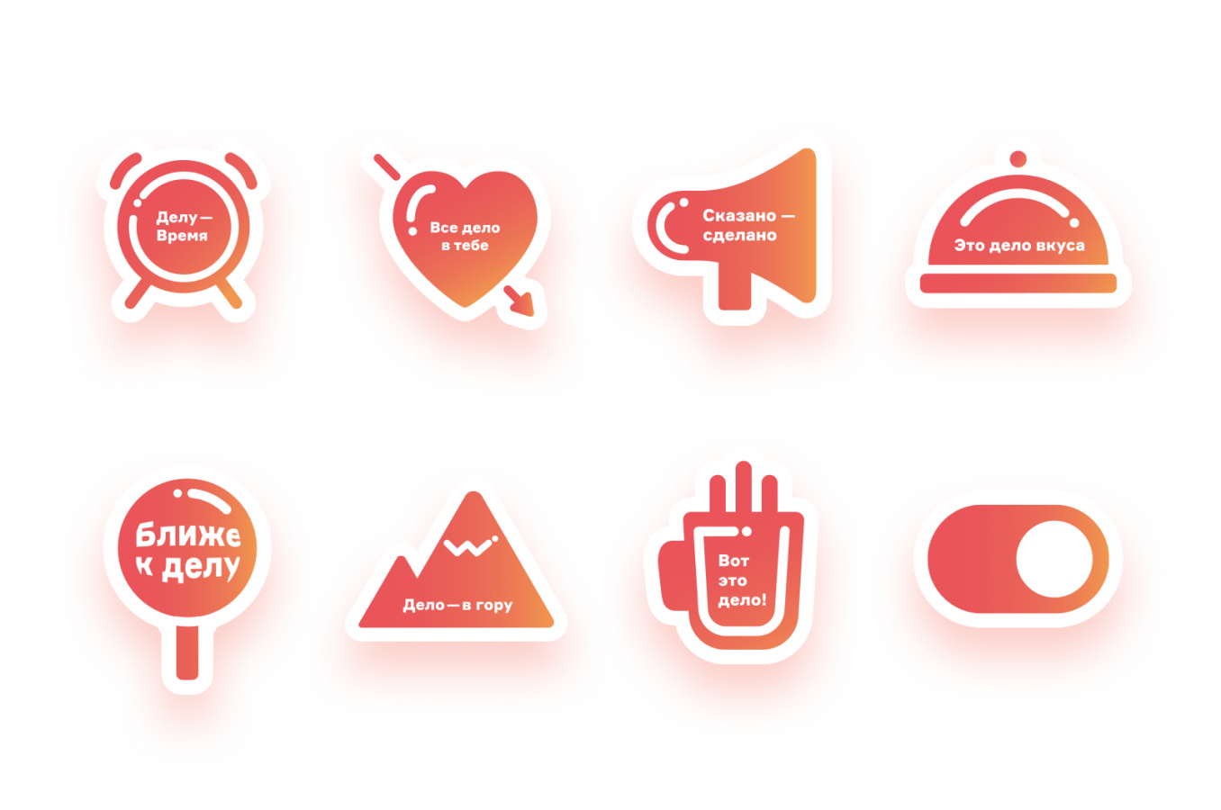 Следующим этапом стала разработка айдентики. Команде проекта предстояло понять, как люди будут использовать бренд в своем личном пространстве, и то, как отразить преимущества онлайн-банка. Решение было найдено: слово «дело» и кнопка переключения — «свайп» — стали основой айдентики.
