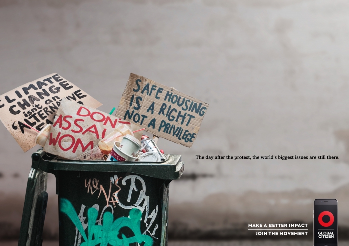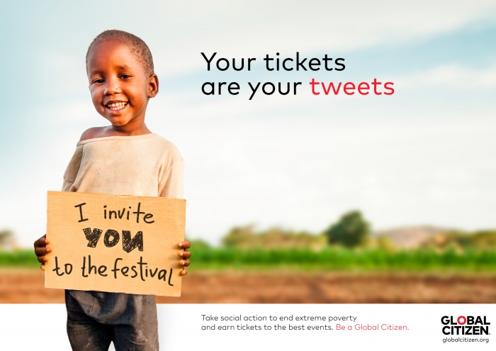 Global Citizen — социальная платформа, объединяющая простых людей, звезд и общественных деятелей, которым не безразличны проблемы бедности, голода, доступности питьевой воды, образования и пр. Организация использует исключительно информационные digital-инструменты для привлечения внимания к актуальным проблемам и борьбе с ними. Любой зарегистрированный пользователь может при помощи платформы подписать петицию, опубликовать твит или отправить e-mail с призывом обратить внимание на глобальные вопросы и повлиять на политиков. Каждое подобное действие учитывается в системе, и за него начисляются баллы, которые впоследствии дают право получить билет на фестиваль с участием таких звезд, как Beyonce или Depeche Mode.