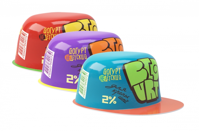 Студент Британской высшей школы дизайна, курса «Визуальные коммуникации» Влад Михайлов представил концепцию упаковки для йогуртов, созданную по мотивам западных музыкальных ТВ-программ. Название йогурта Bigurt созвучно с выражением «be good» («быть классным»), что должно вызвать у потребителей положительную ассоциацию с продукцией.