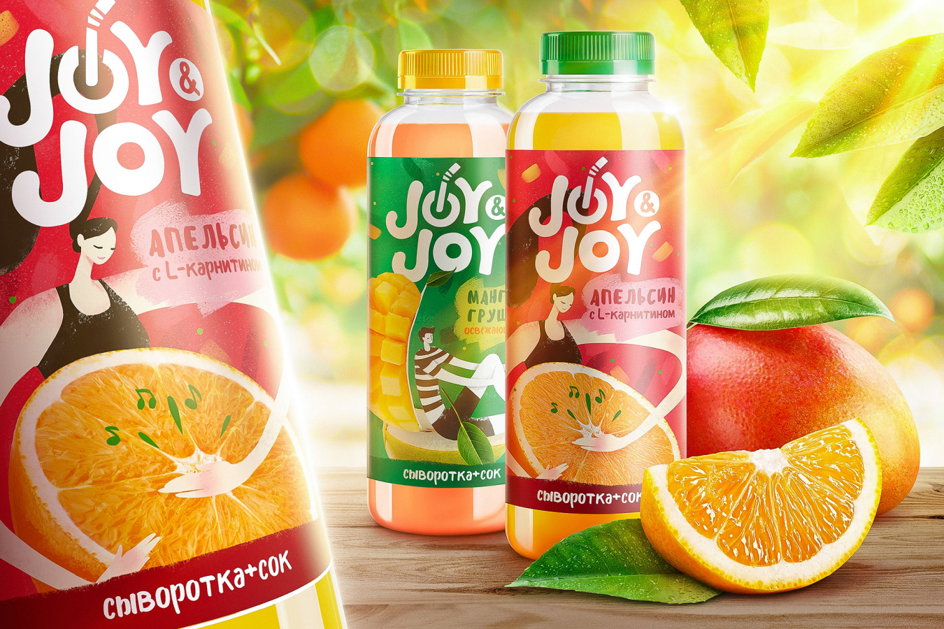 Креаторами было принято решение остановиться на названии «Joy&Joy». Оно подчеркивает идею двойного удовольствия от продукта: сладкий, освежающий напиток без вреда для здоровья и фигуры. Название легко запоминается, не вызывает сложностей при прочтении и формирует образ современного продукта для активной и прогрессивной целевой аудитории.