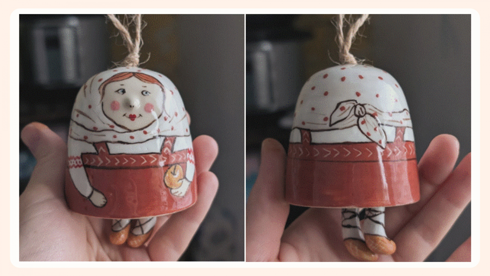 Анна Дудниченко и ее коллеги изготовили и расписали для RTA эксклюзивные елочные игрушки-колокольчики с десятью персонажами: