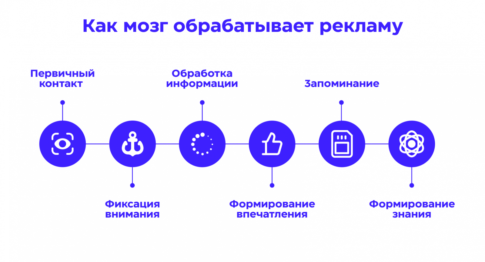 Все начинается с внимания. Если рекламу не заметят, она не сможет повлиять на формирование знания. Объясним подробнее процессы, которые происходят в сознании аудитории после первого контакта с медийной рекламой.