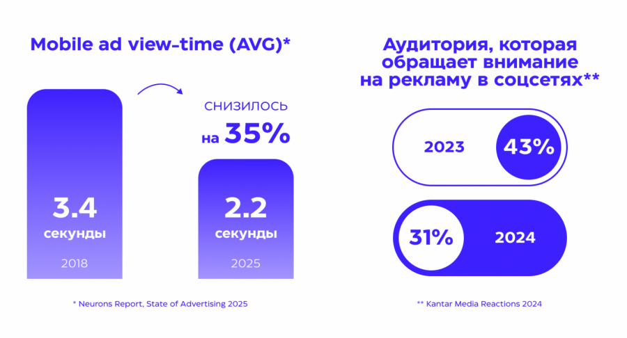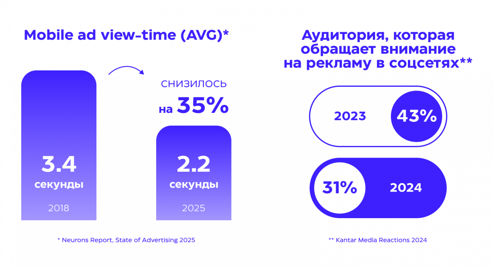 - В медиакитах рекламных площадок отсутствует информация про то, сколько секунд внимания привлекает тот или иной формат.