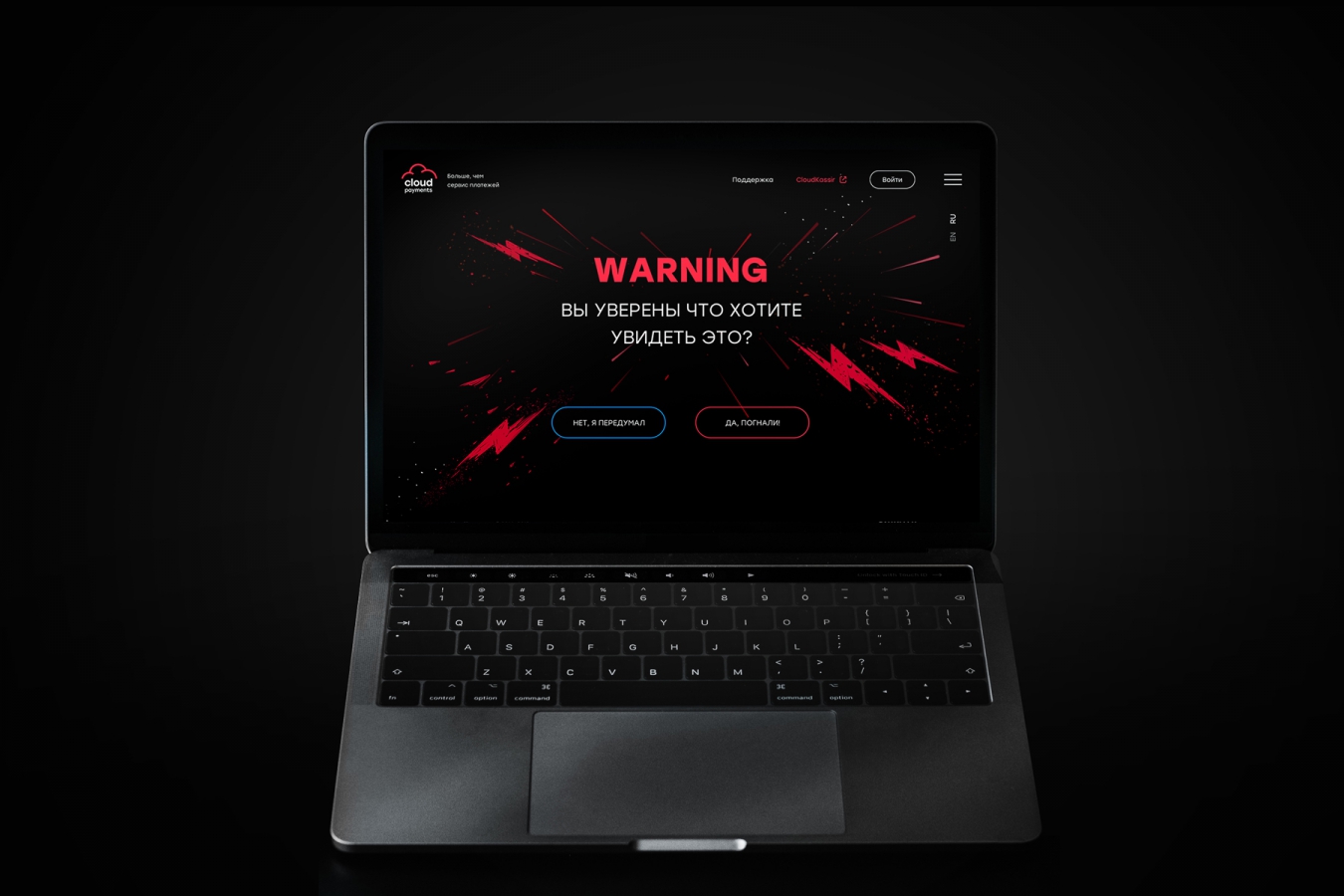 Самая концептуальная и интересная часть работы нас ждала при работе над сайтом CloudPayments. Мы хотели в полной мере отразить натуру своего заказчика, поэтому выполнили двойную работу — помимо основной версии сайта сделали альтернативную. Среди ангельских бело-голубых тонов мы замечаем крутого пса, талисман CloudPayments. С сигарой в клыках он рычит: «Тебе мало?» При нажатии на него появляются три дисклеймера подряд, и сайт полностью преображается: перед нами предстает своего рода альтер эго CloudPayments — провокационное и даже бесноватое.