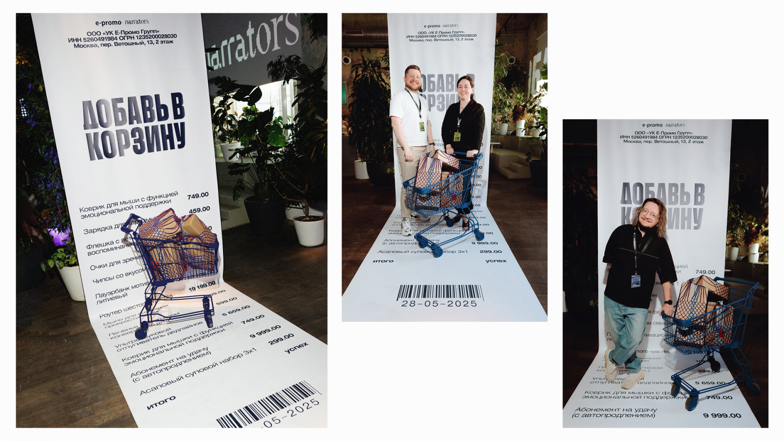 Фотозона в стиле кассового чека со всякими приколами стала одной из самых популярных точек вечера. Огромный чек превращался в ироничный арт-объект для вдохновения, шуток и общения.