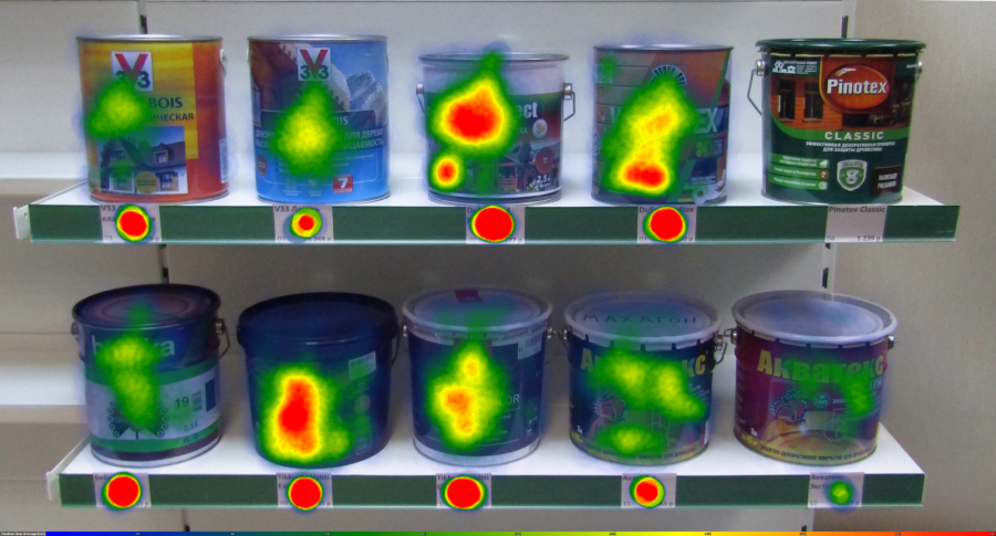 Когда в сопровождаемых покупках подключается eye-tracking, поведение покупателей становится гораздо понятнее. Технология показывает, куда человек смотрит в первую очередь, что задерживает его внимание, а что остается за кадром. В результате мы получаем тепловые карты, которые ясно показывают «горячие» и «холодные» зоны на полке или упаковке.