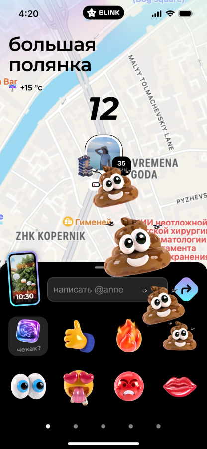 С начала 2025 года самым популярным у пользователей Blink стал забавный стикер «какашка», который отправили свыше 500 млн раз. Второе место занял стикер с поцелуем — им воспользовались более 170 млн раз, а на третьем — баклажан, который отправили 140 млн раз.